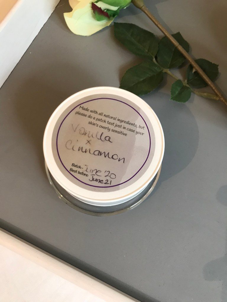 Packaging is minimalist and cute. Personalised, handmade and simple. The container is a durable and reusable plastic which is also widely recyclable. The labels are likely to succumb to the natural ingredients as you open and close and use the product. The handwritten batch and best before date therefore is likely to fade over time.